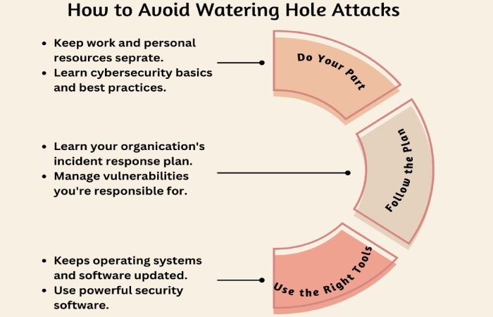 In watering hole attacks, cybercriminals target specific individuals through websites they visit regularly, like industry forums or internal portals, or even something not related to their work, like a local food-ordering platform. These websites become infected upon attack and deploy malware to their visiting clients by exploiting their browsers. The method is targeted and efficient since it uses their trust in familiar virtual spaces to carry out attacks.