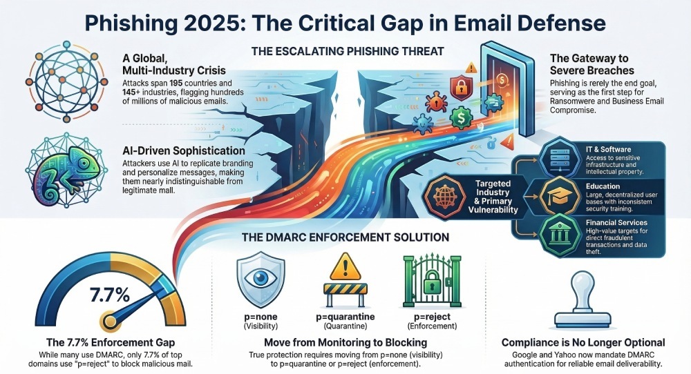 What the data shows is clear: phishing is not slowing down. It is becoming more targeted, more sophisticated, and more difficult to detect. Organizations that fail to adopt strong email authentication protocols are increasingly exposed—not only to financial loss, but also to reputational damage and operational disruption.