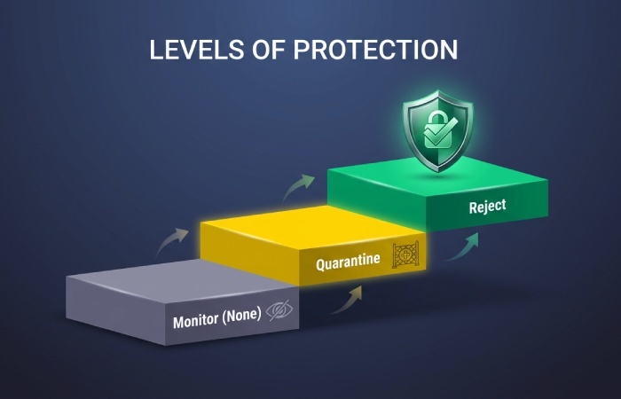 Organizations that remain at p=none gain visibility but do not actively prevent phishing. True protection comes from **moving to enforcement policies such as quarantine or reject.