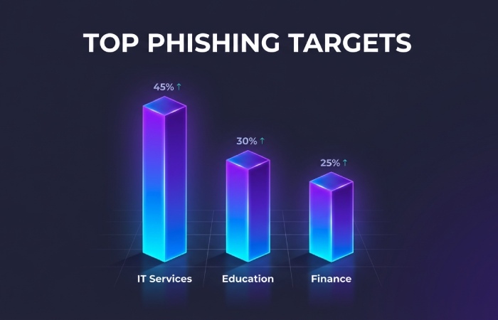 The IT sector consistently ranks as the most targeted industry, accounting for a significant share of phishing attacks. This is largely due to its access to sensitive infrastructure, credentials, and intellectual property.